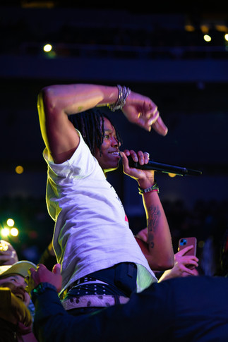 Complimenting his ability to entertain on stage, J.I.D also has a strong ability to connect with the crowd in between songs by expressing gratitude to his fans (whether new or old), reflecting on his journey to where he is now, and of course acknowledging the fact that he is Grammy-nominated this season. Throughout the show, J.I.D performs a majority of his recent album, but as he states throughout the night, he’ll also be playing his “foundational songs,” which happen to be his hit singles. Songs such as “151 Rum,” “Surround Sound,” “NEVER,” and even the aggressive “Stick” are played for all fans to enjoy. Of course, the most anticipated part of any show is seeing whether any special guests will come out to support, and J.I.D made sure to make a few calls for his stop in Los Angeles. By just the fourth song alone, fans witnessed Vince Staples come out and perform alongside J.I.D on their track “VCRs.”